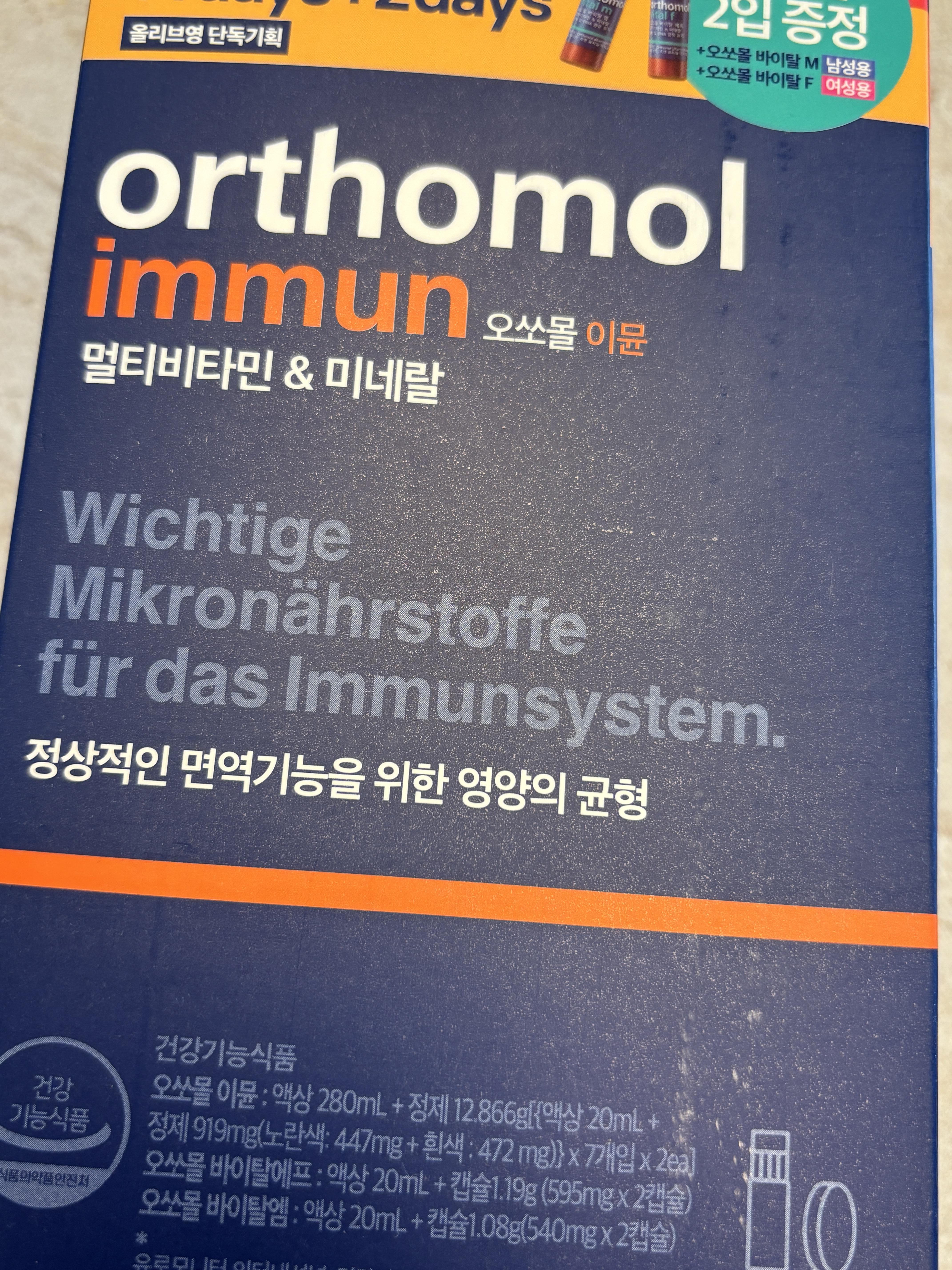 이번에 올리브영에서 오쏘몰 이뮨 멀티비타민 14입+2입 단독기획 제품이 65,200원으로 가격이 너무 괜찮아서 구입할만했어요!