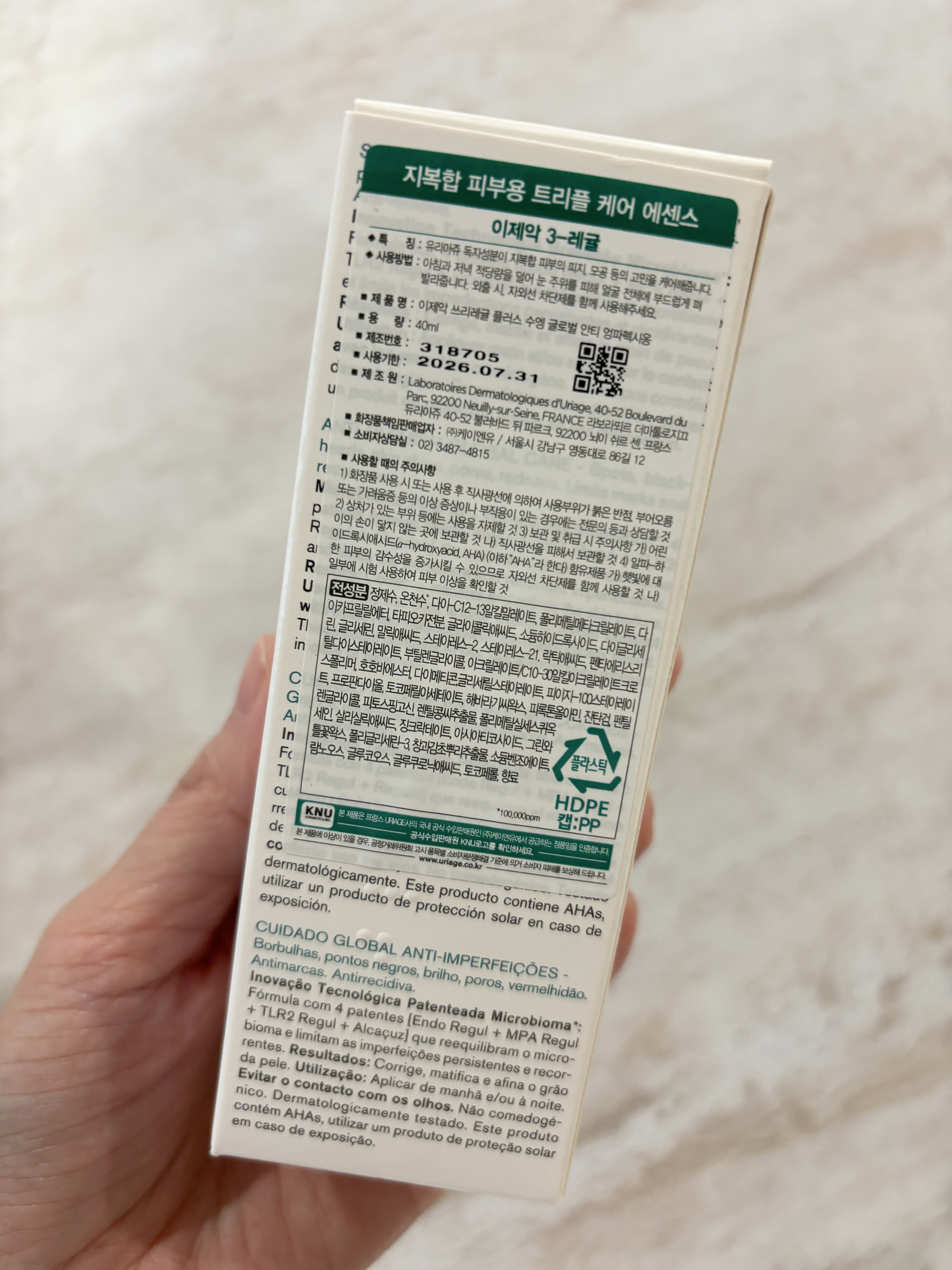 유리아쥬 이제악 3-레귤 에센스는 과다 피지 컨트롤 뿐만 아니라 AHA+BHA 성분의 각질케어로 건강한 피부 컨디션을 유지할 수 있도록 도와주는 제품입니다 :)
