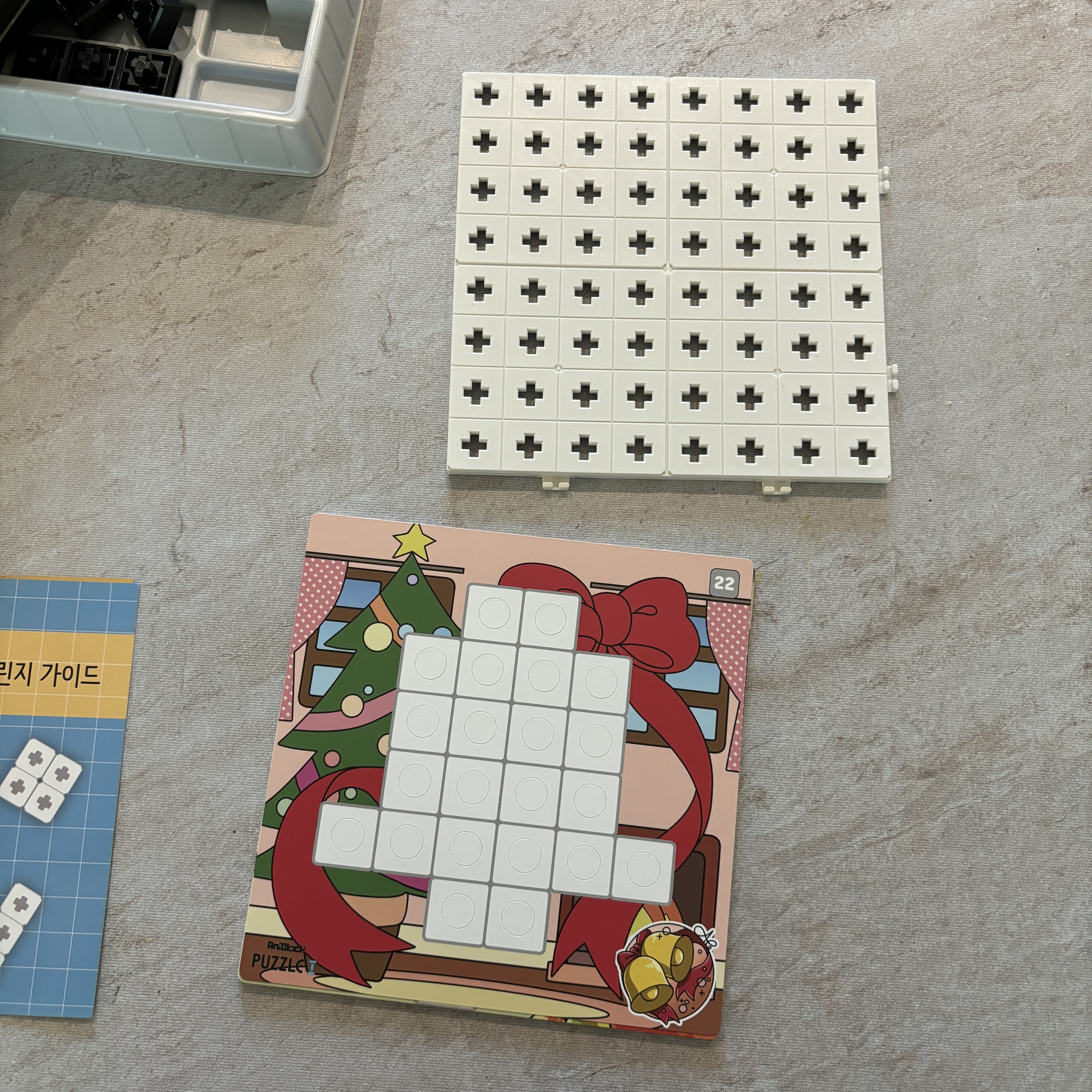사용 방법은 블록판 위에 도안을 올려놓고, 도안에 맞게 폴리오미노 블록을 맞추면 되는 간단한 방식이에요.