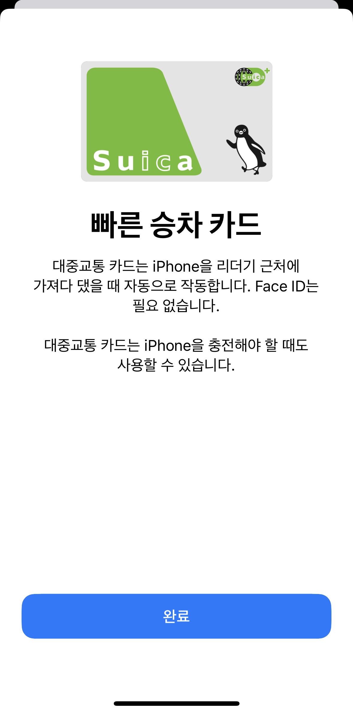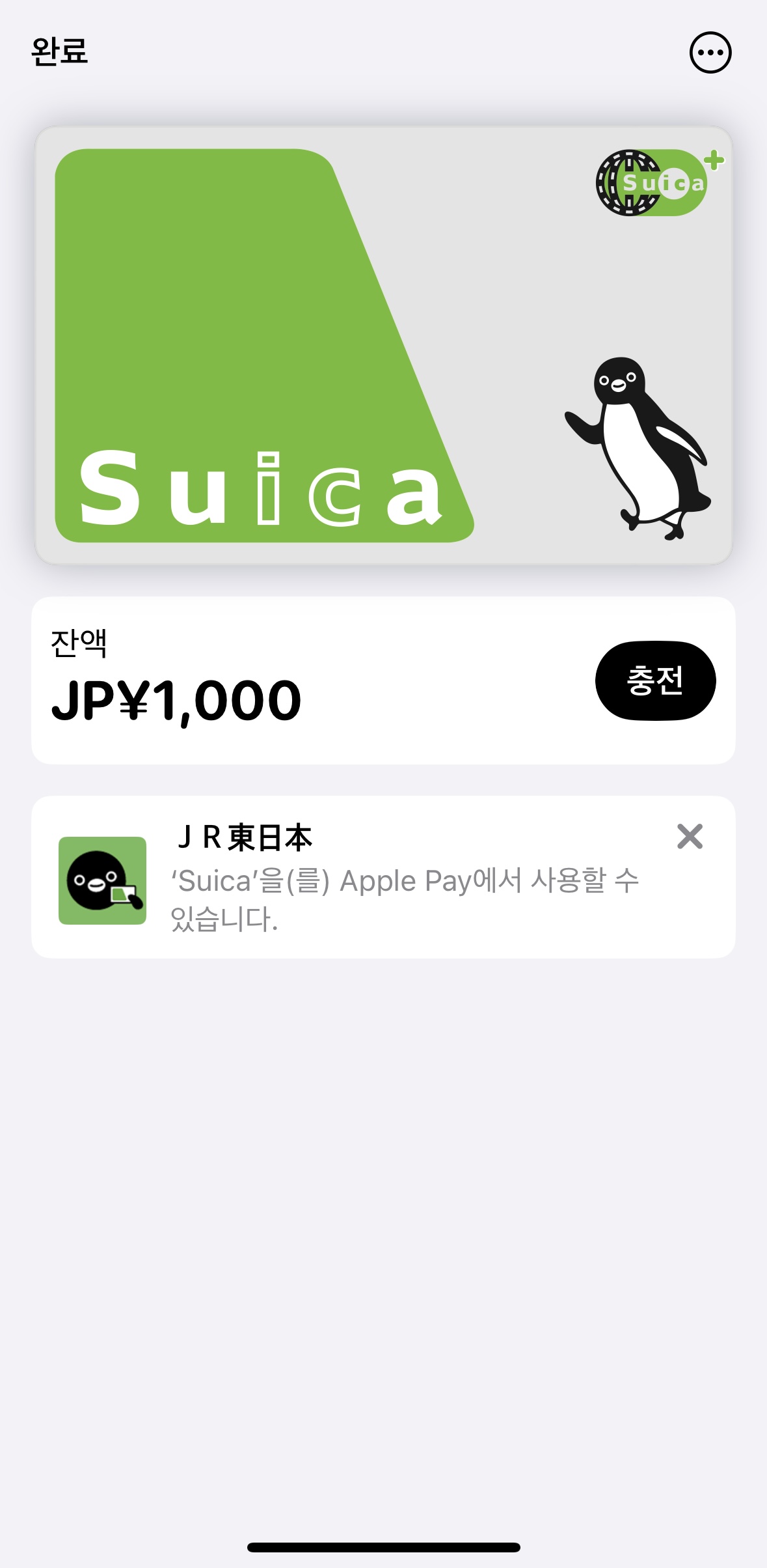 위 과정이 모두 끝나고 나면 아이폰 지갑 어플 메인에 스이카 교통 카드가 등록됩니다.