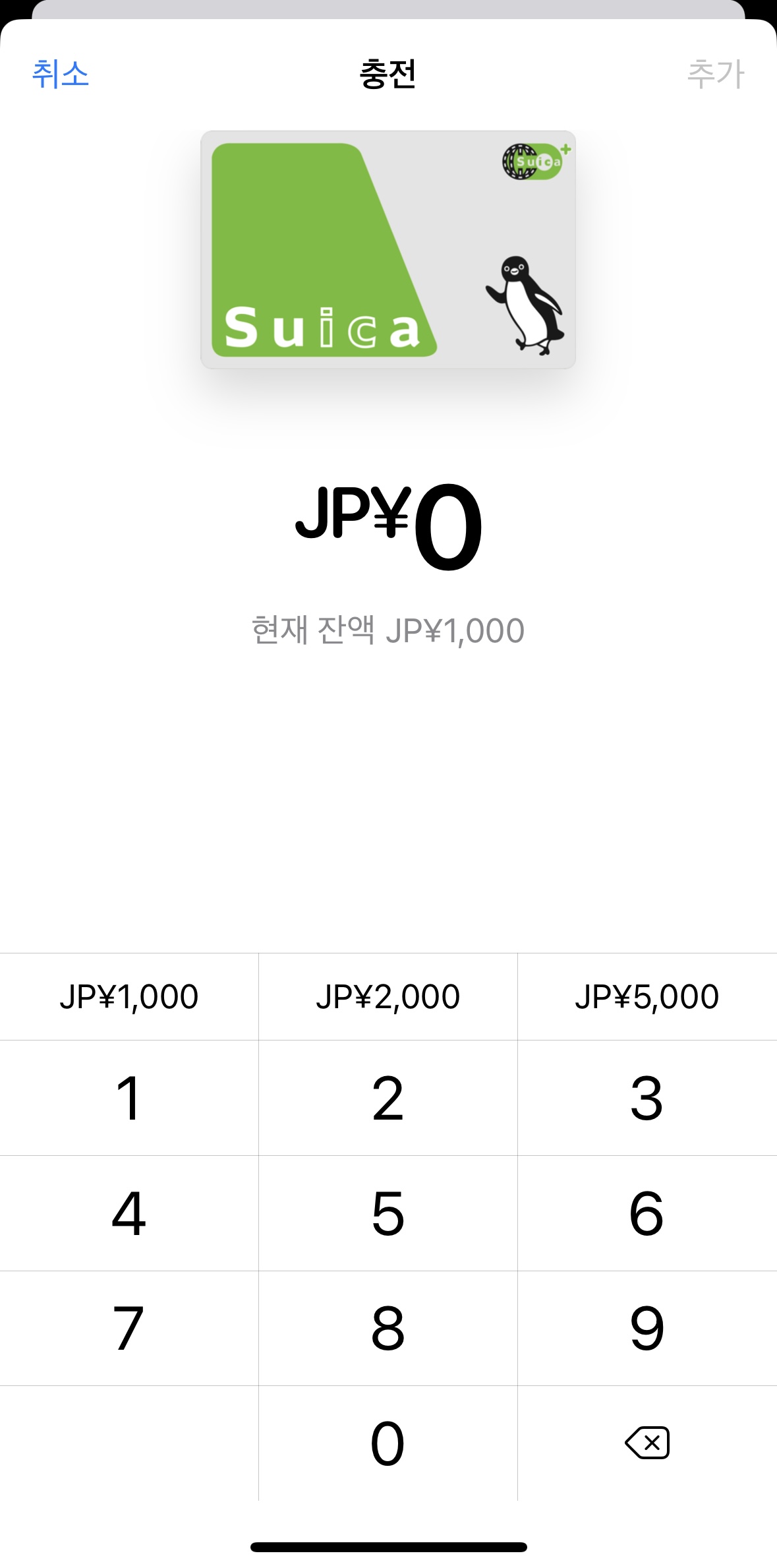 Suica 버튼을 눌러서 진행하다보면 충전 금액을 입력해야 하는 란이 나오는데요.