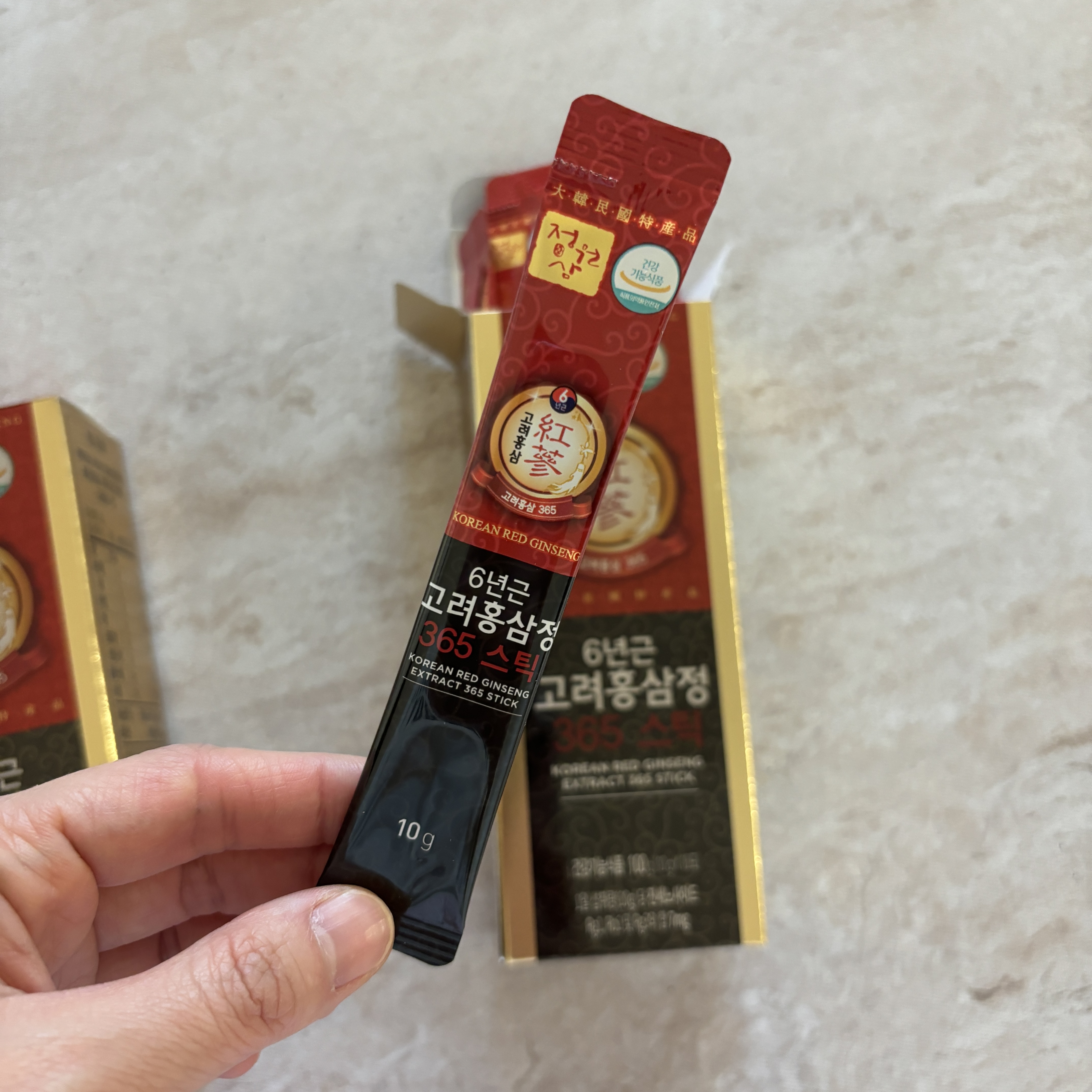 이번에 받은 정원삼 6년근 고려홍삼정 365스틱 매일 한포씩 먹어보려고 합니다 :)