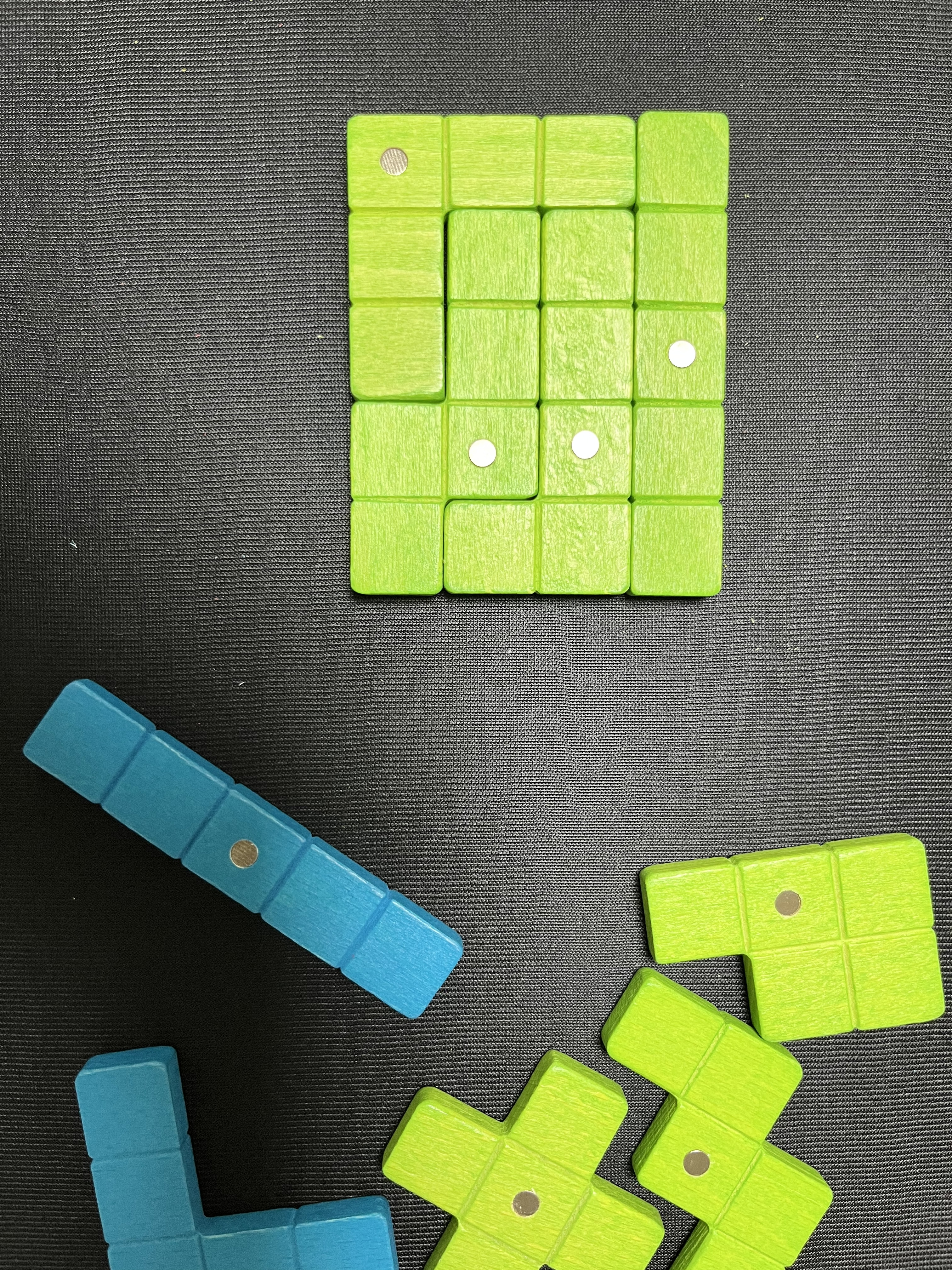 처음에는 특정 모양에 맞춰서 블록을 배치하는 활동보다는, 위 사진처럼 펜토미노의 다양한 조각들을 활용해서 사각형을 만드는 활동부터 시작하게끔 지도해주시더라구요.