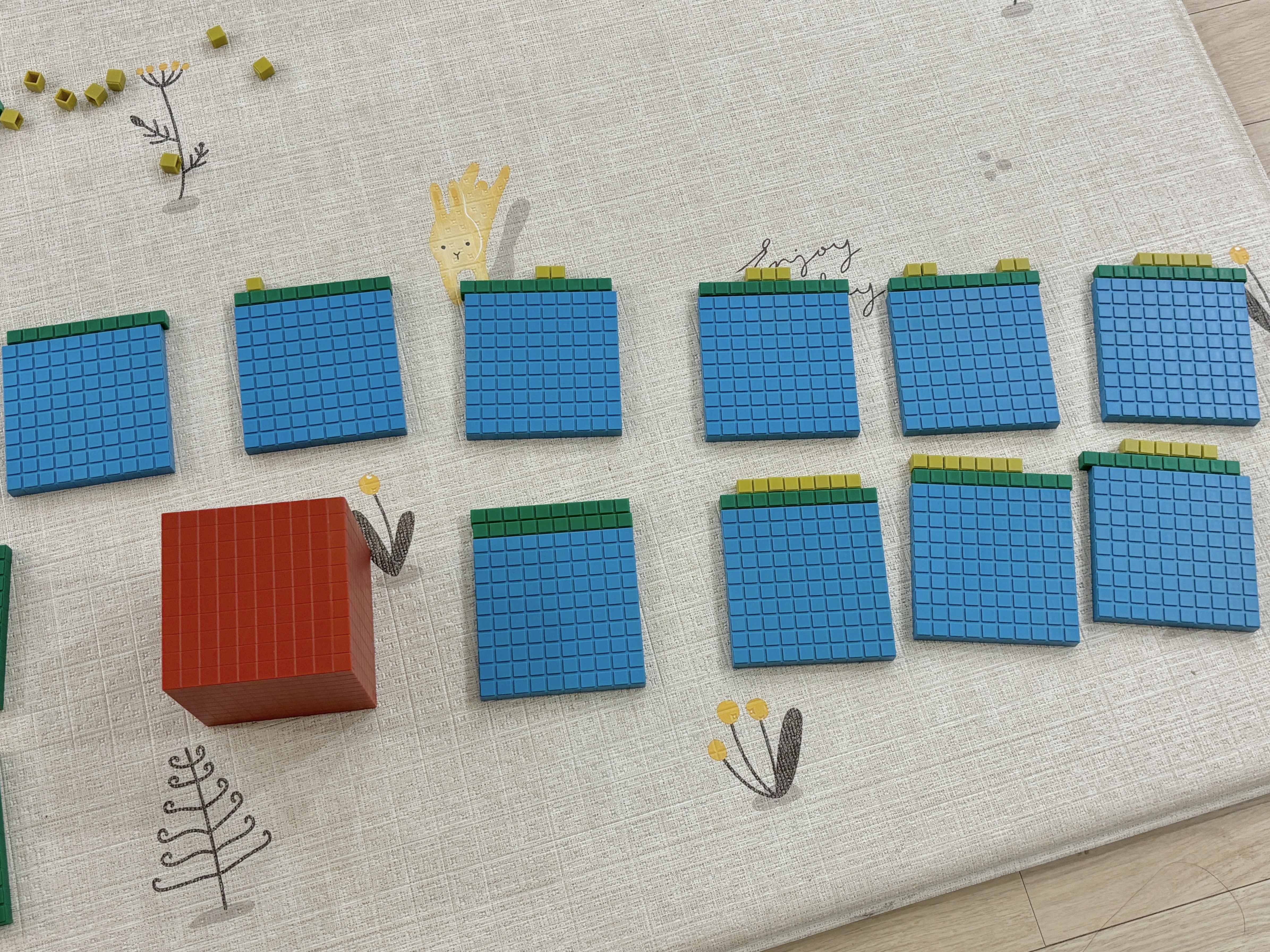 그래서 자연스럽게 수학 교구를 노출시켜야겠다 싶어서 넘버블럭스 제품과 지금도 뽕뽑는 육아템이자 수학 교구인 자석 블럭 큐블로도 구입해서 아이가 가지고 놀 수 있게끔 세팅해주었어요.