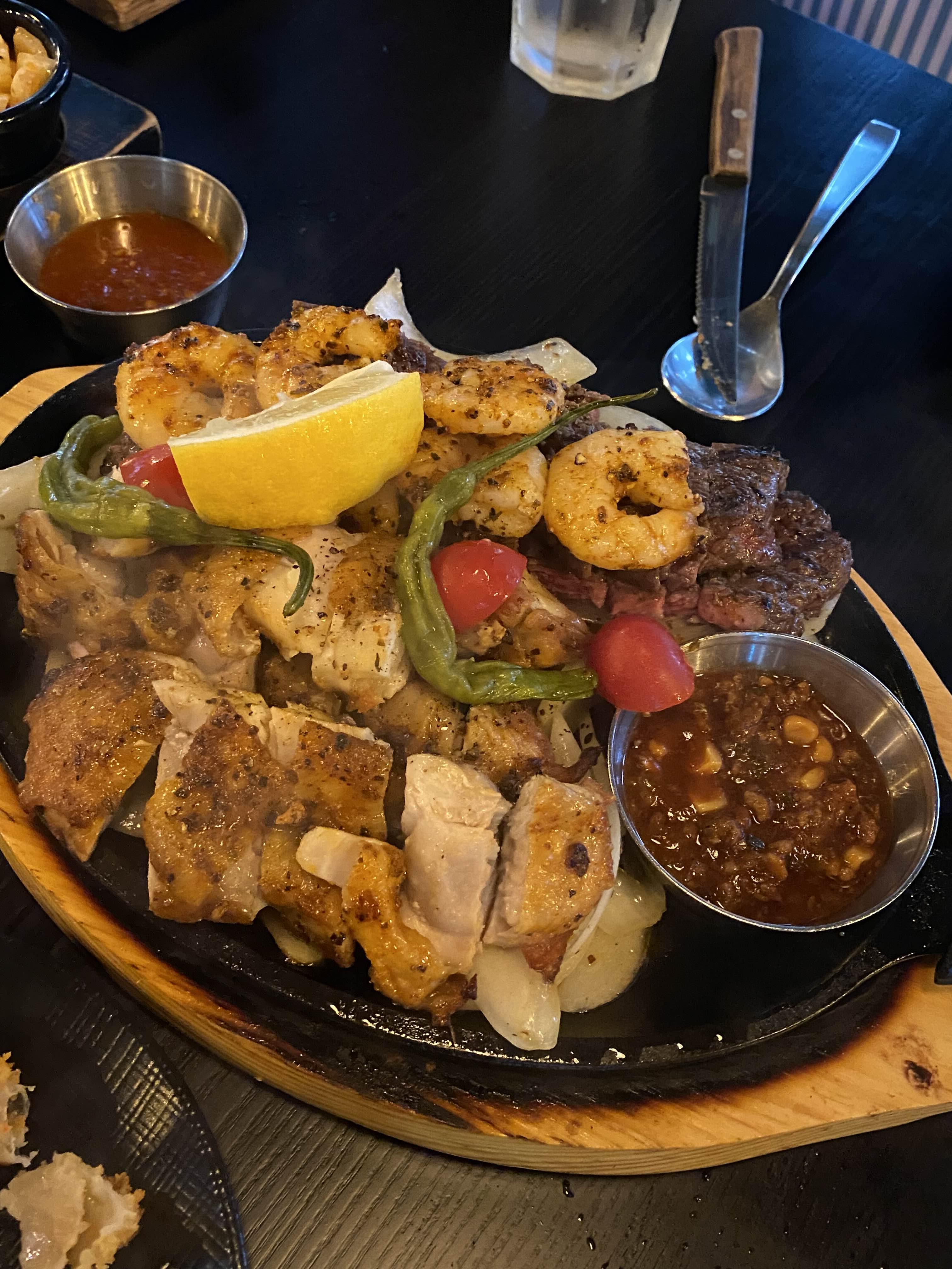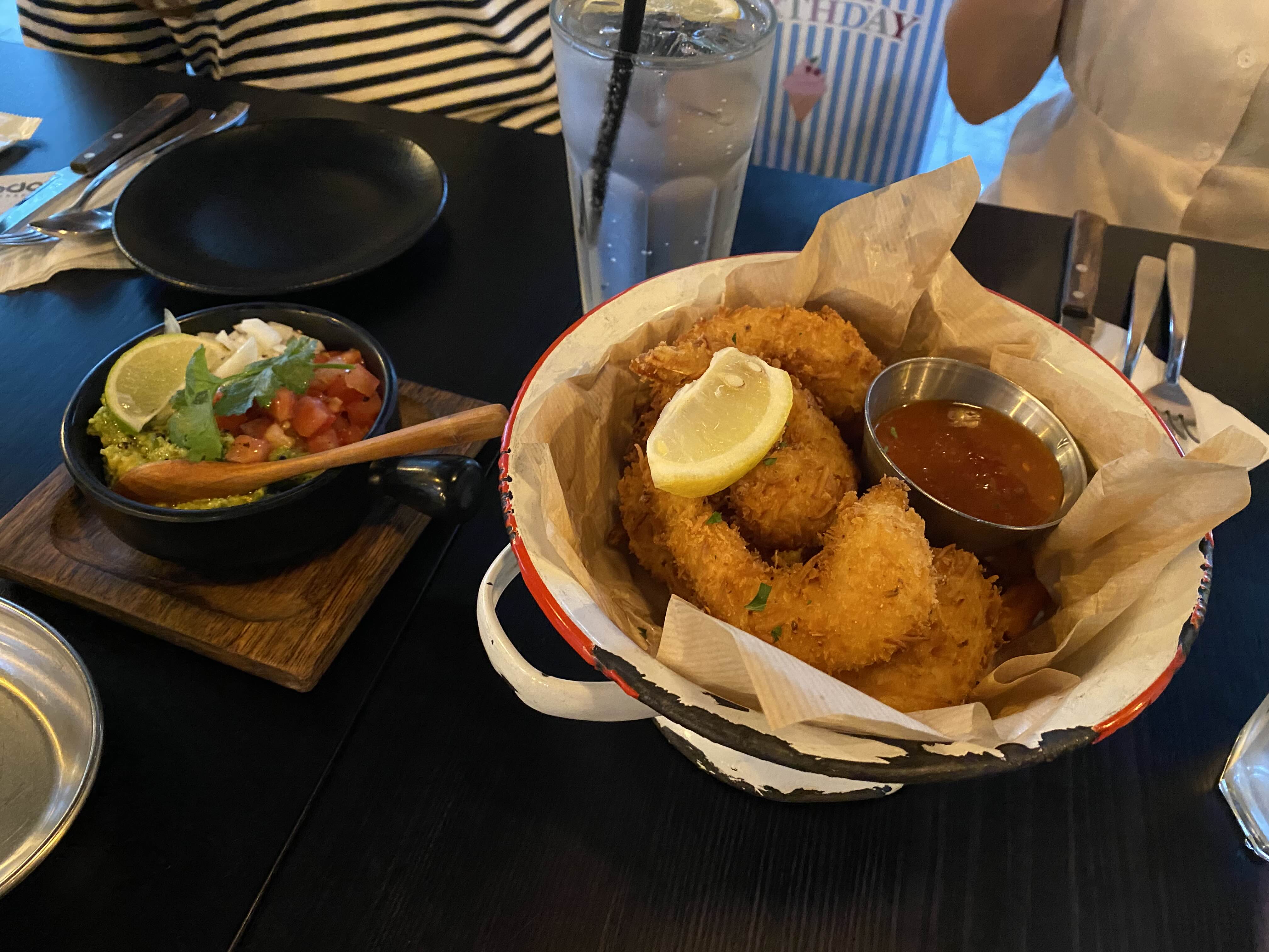 타코가 메인이긴 하지만 전 파히타를 정말 사랑하기 때문에 시그니처 파히타, 코코넛 쉬림프&프라이즈, 과카몰리 이렇게 세 가지 메뉴를 주문했어요 :)