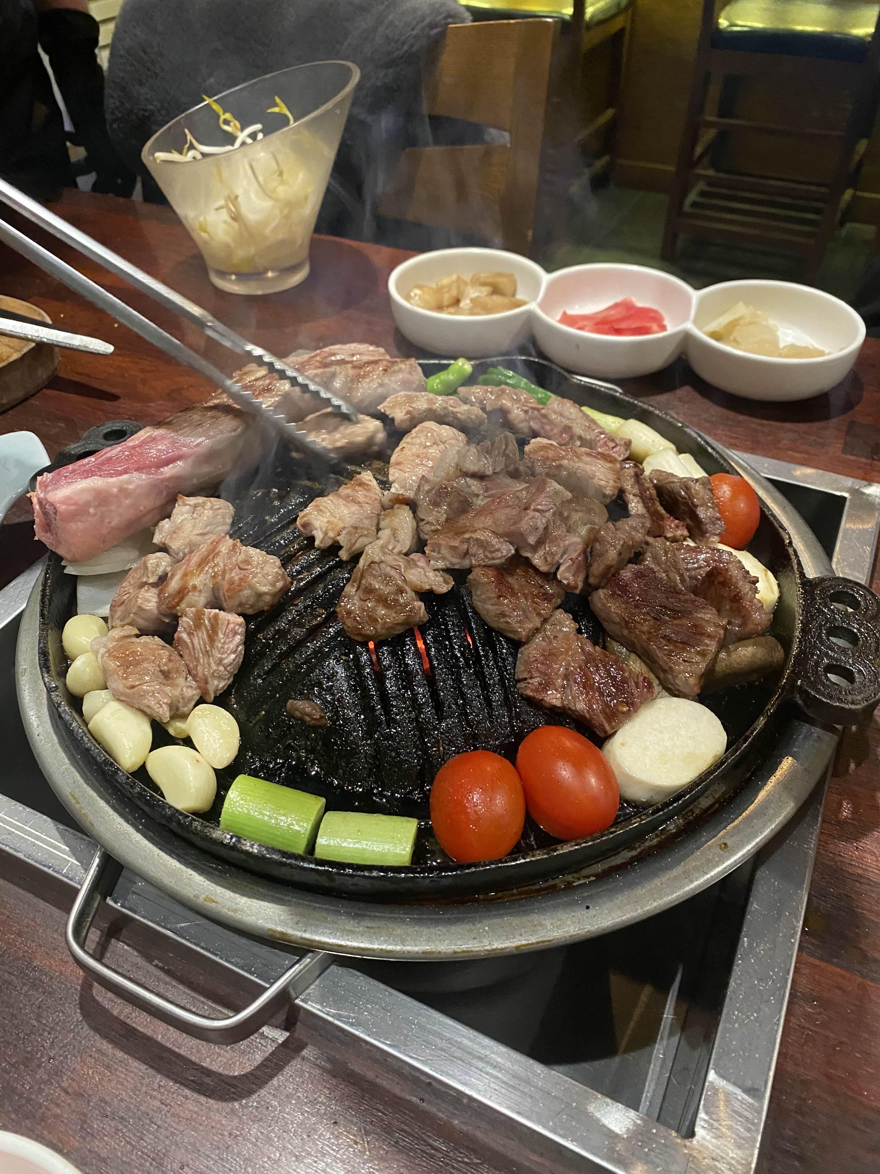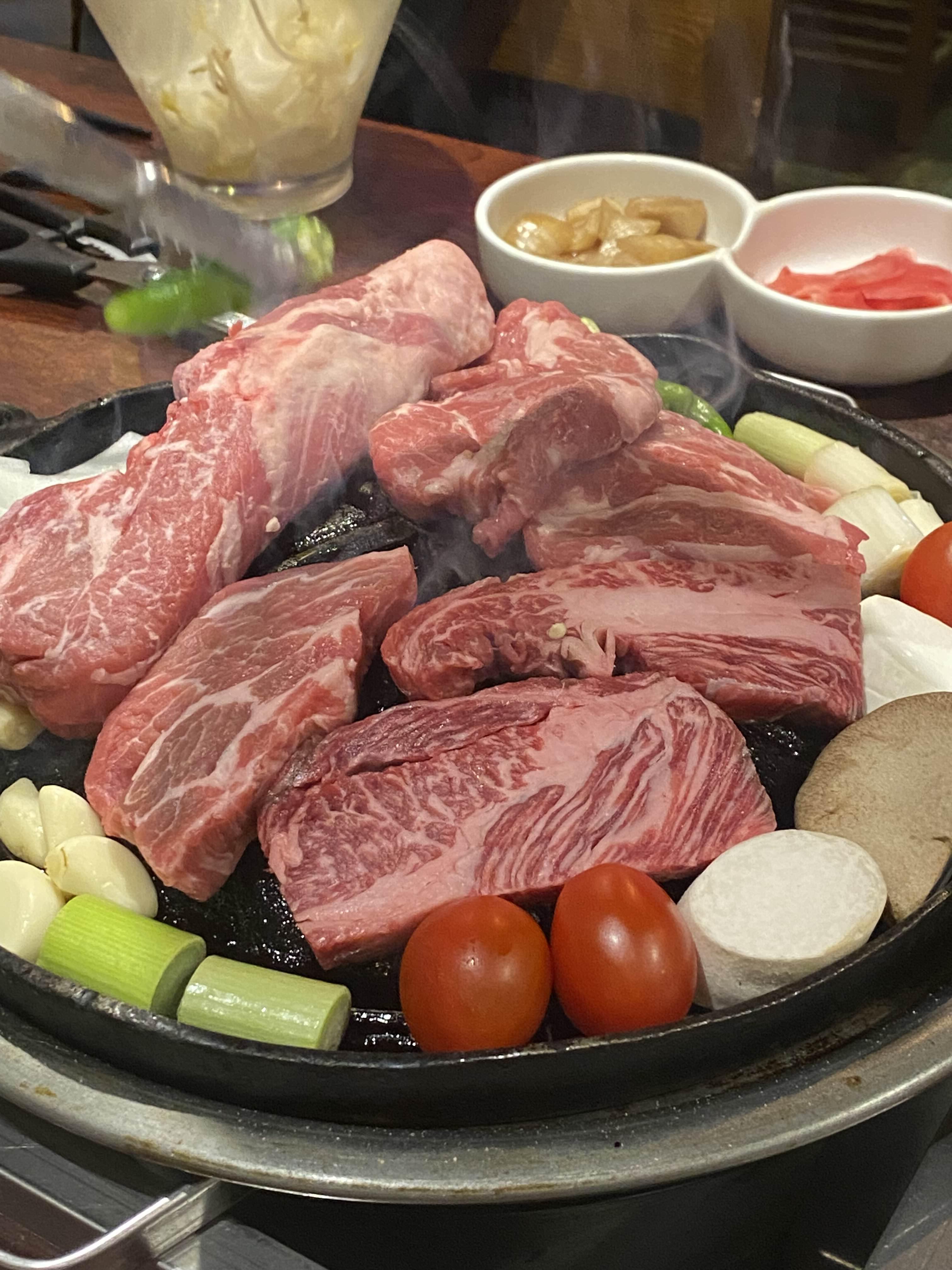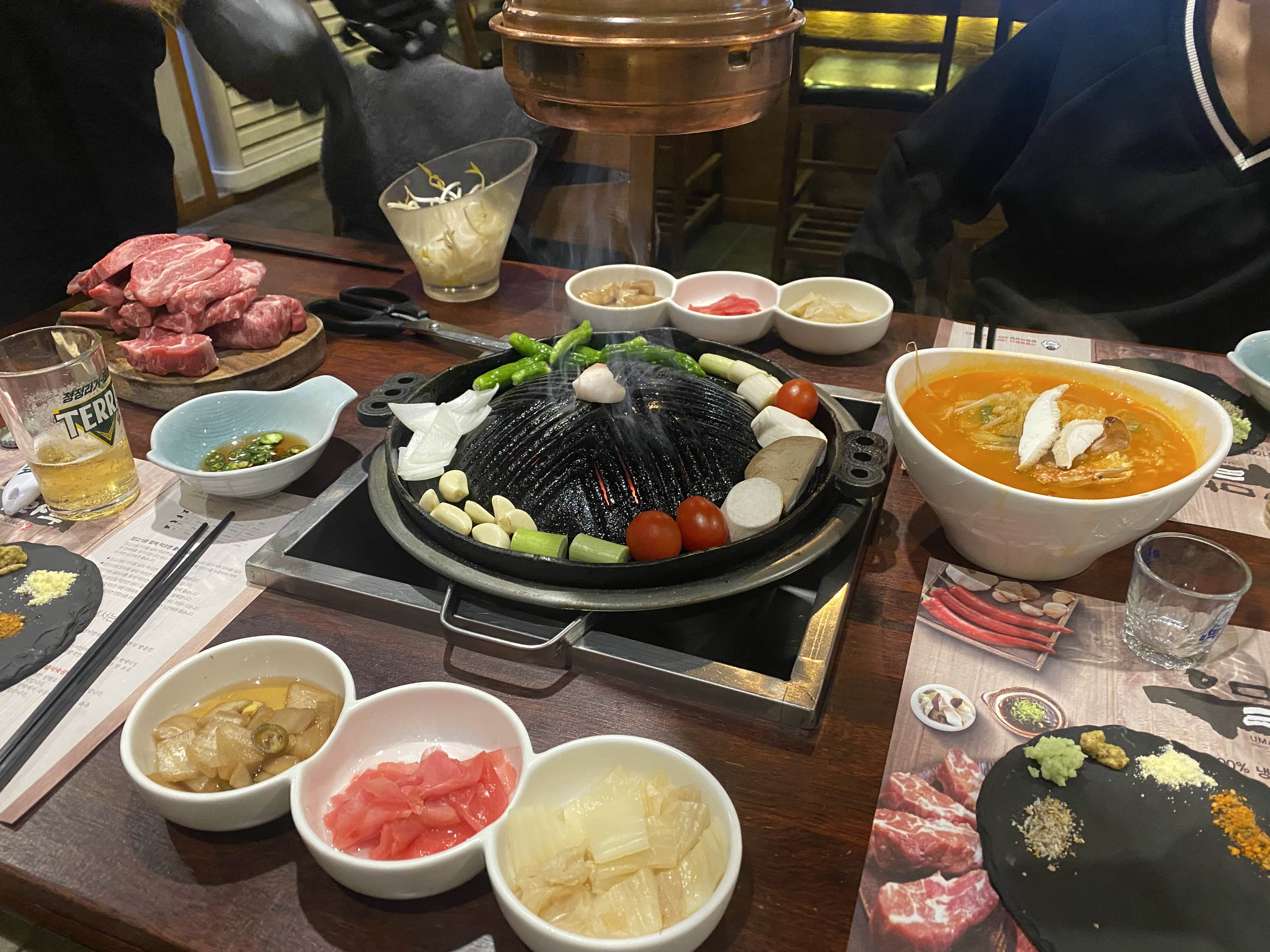 창원 중동 우마이라무는 직접 야채와 고기를 구워주셔서 편하게 모임가지기 좋은 것 같아요.