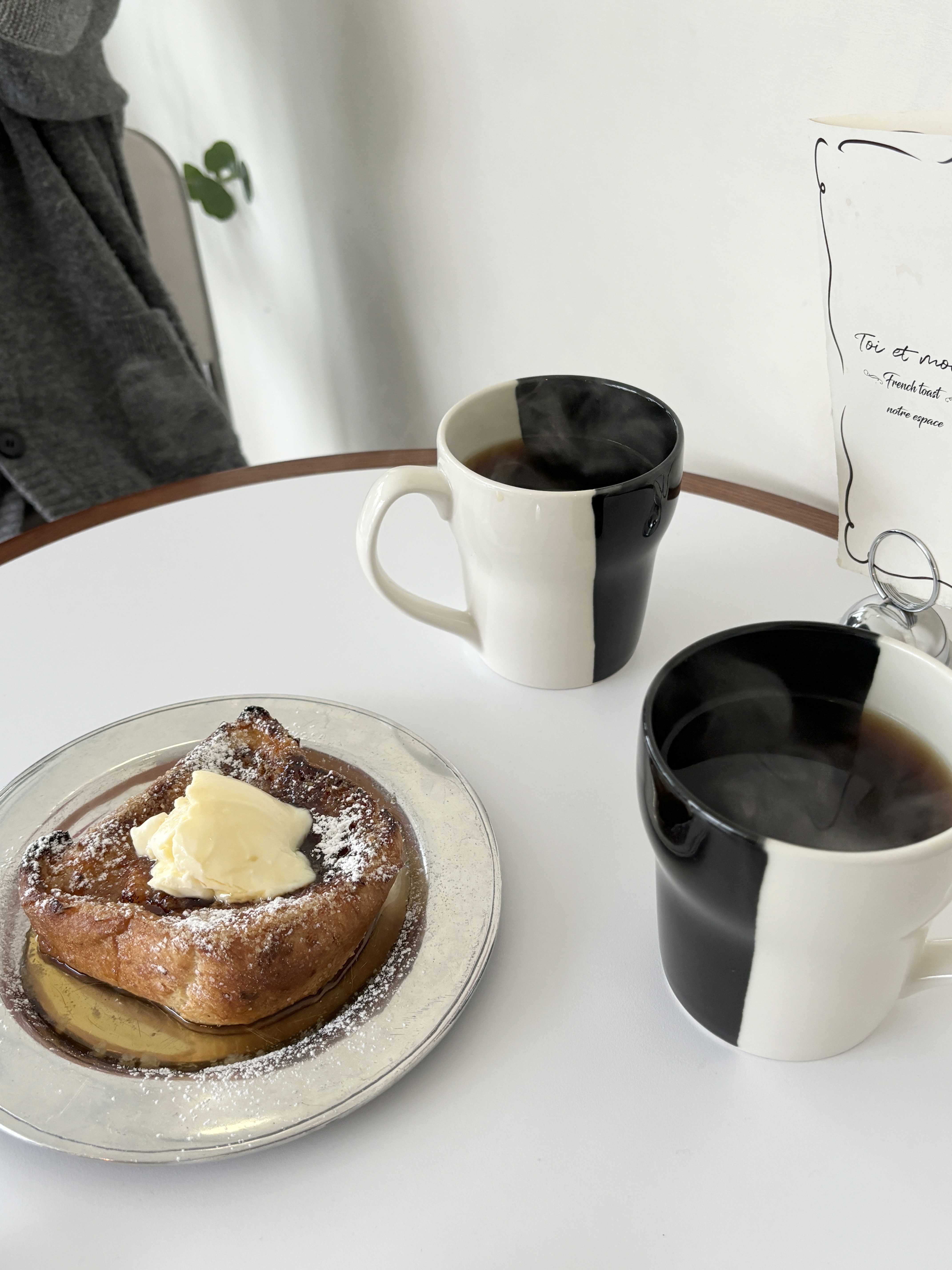 저희는 따뜻한 아메리카노와 카이막 프렌치토스트를 시켜보았어요.