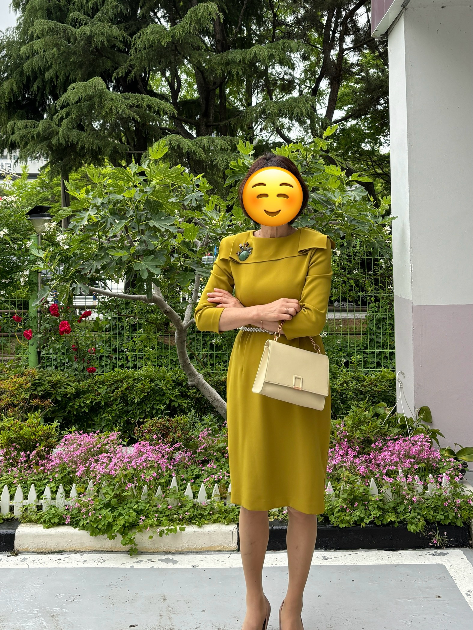 저희 엄마는 평소에 컬러감 있는 옷을 즐겨입으시는데, 가방 컬러가 어느 색상 옷에나 다 어울리는 컬러라 올리브색 원피스에도 찰떡처럼 어울리더라구요!!