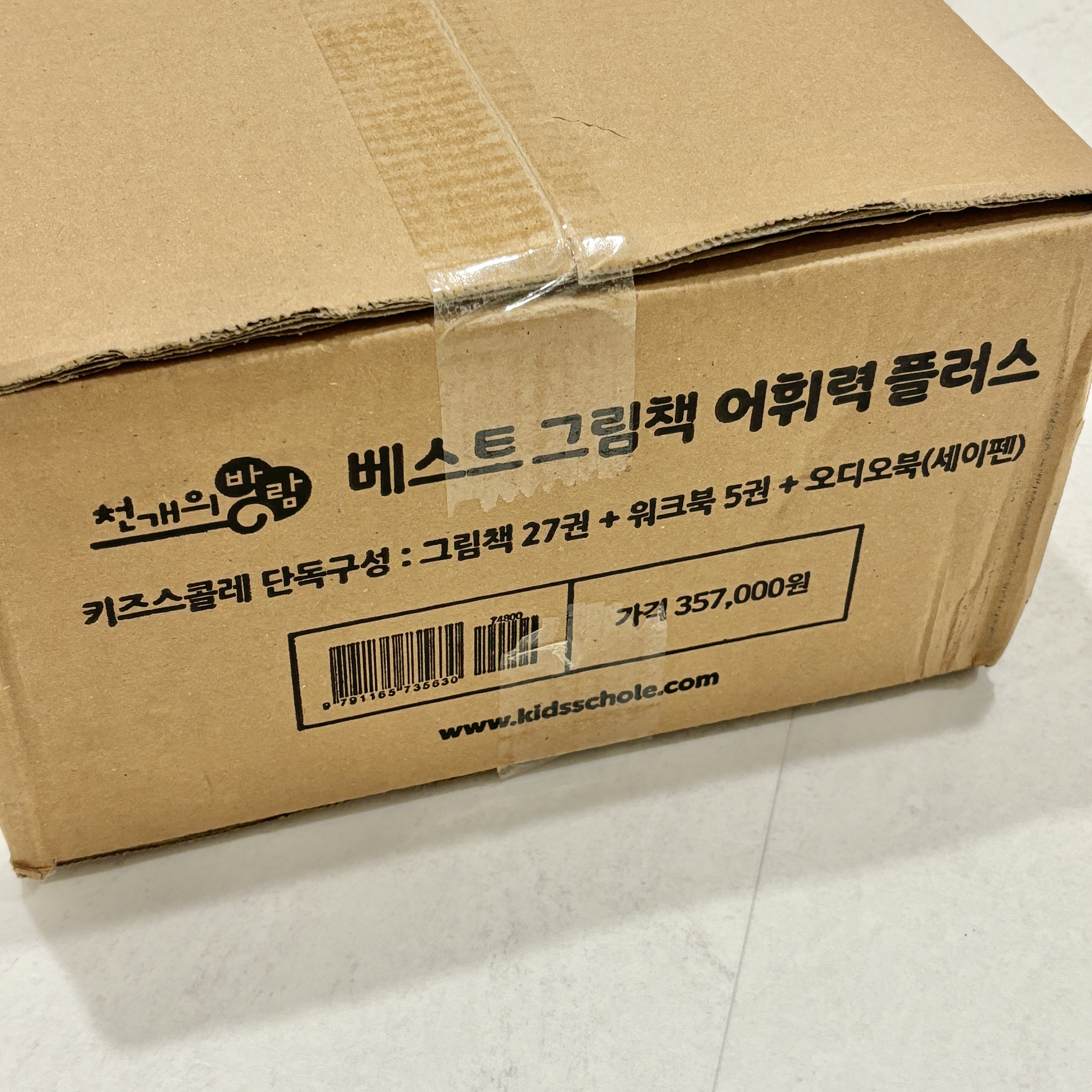 그래서 키즈스콜레 천개의바람을 선택했는데, 키즈스콜레 전집은 이번에 첫 구매라 박스를 뜯어보기 전부터 기대가 되었답니다!