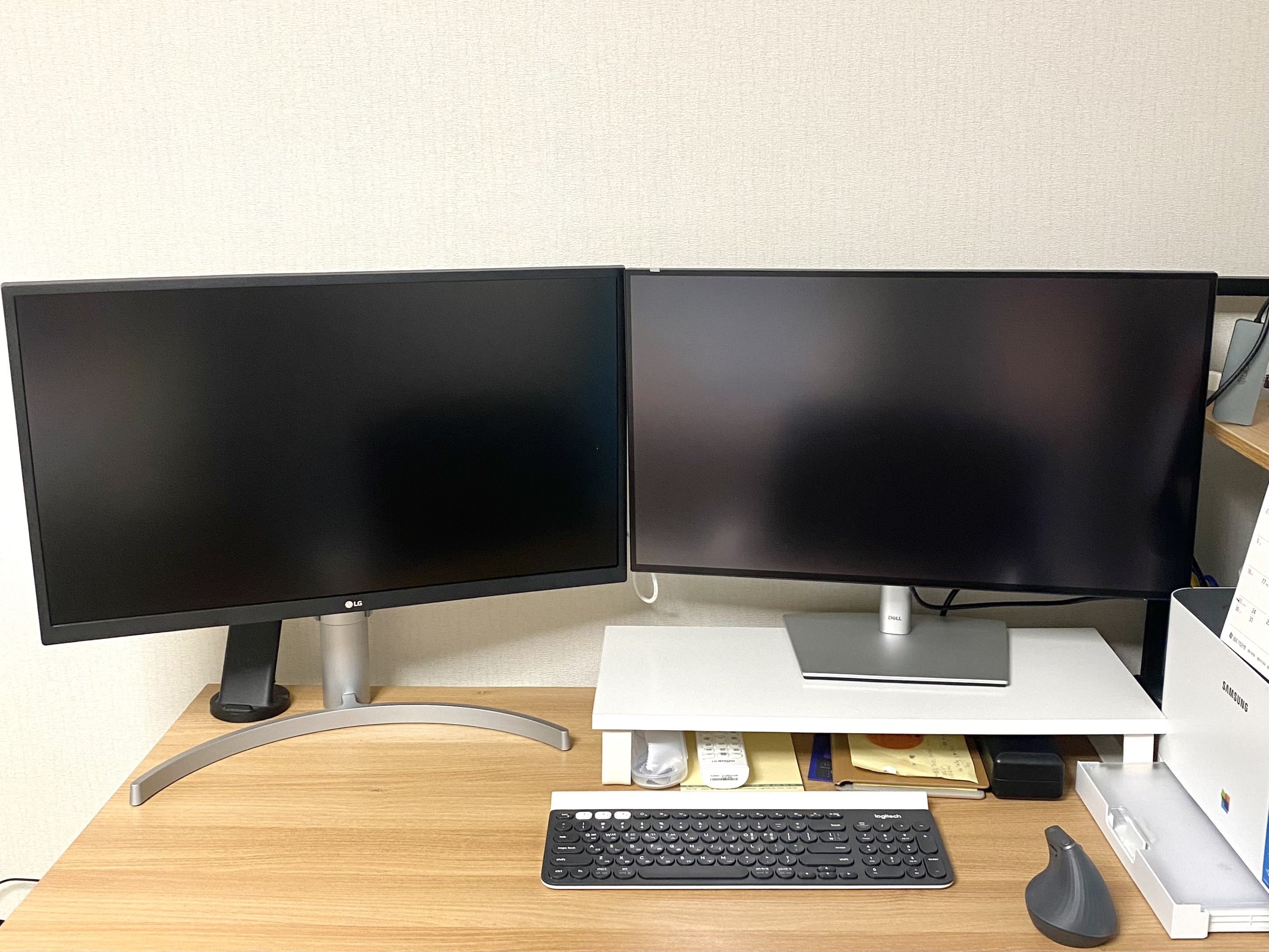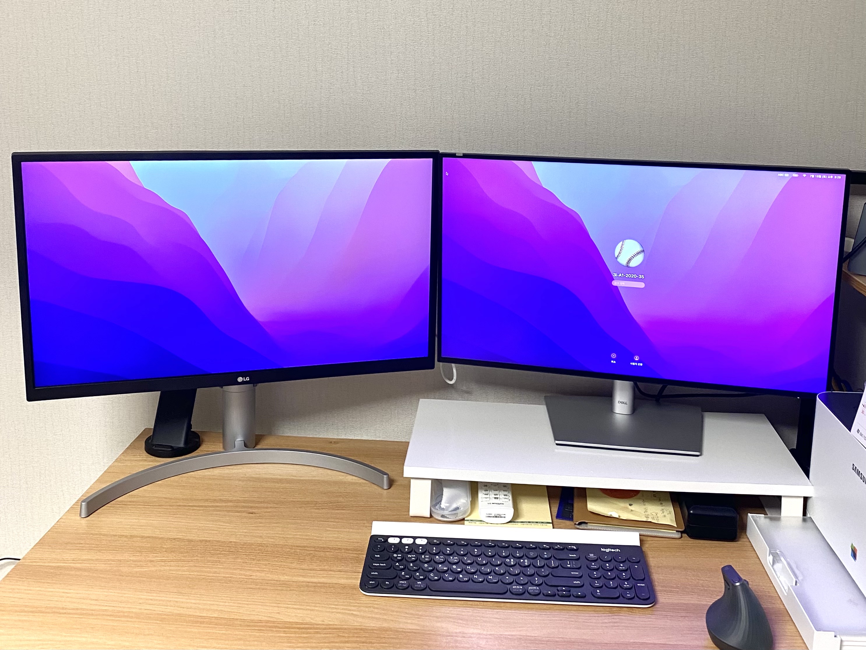 처음에 델 울트라샤프 U2723QE 모니터만 사서 회사에서 지급해준 맥북에 크램쉘 모드로 업무를 하다가 도저히 안되겠어서 결국 LG 27UL550 모니터까지 추가 구입했답니다!