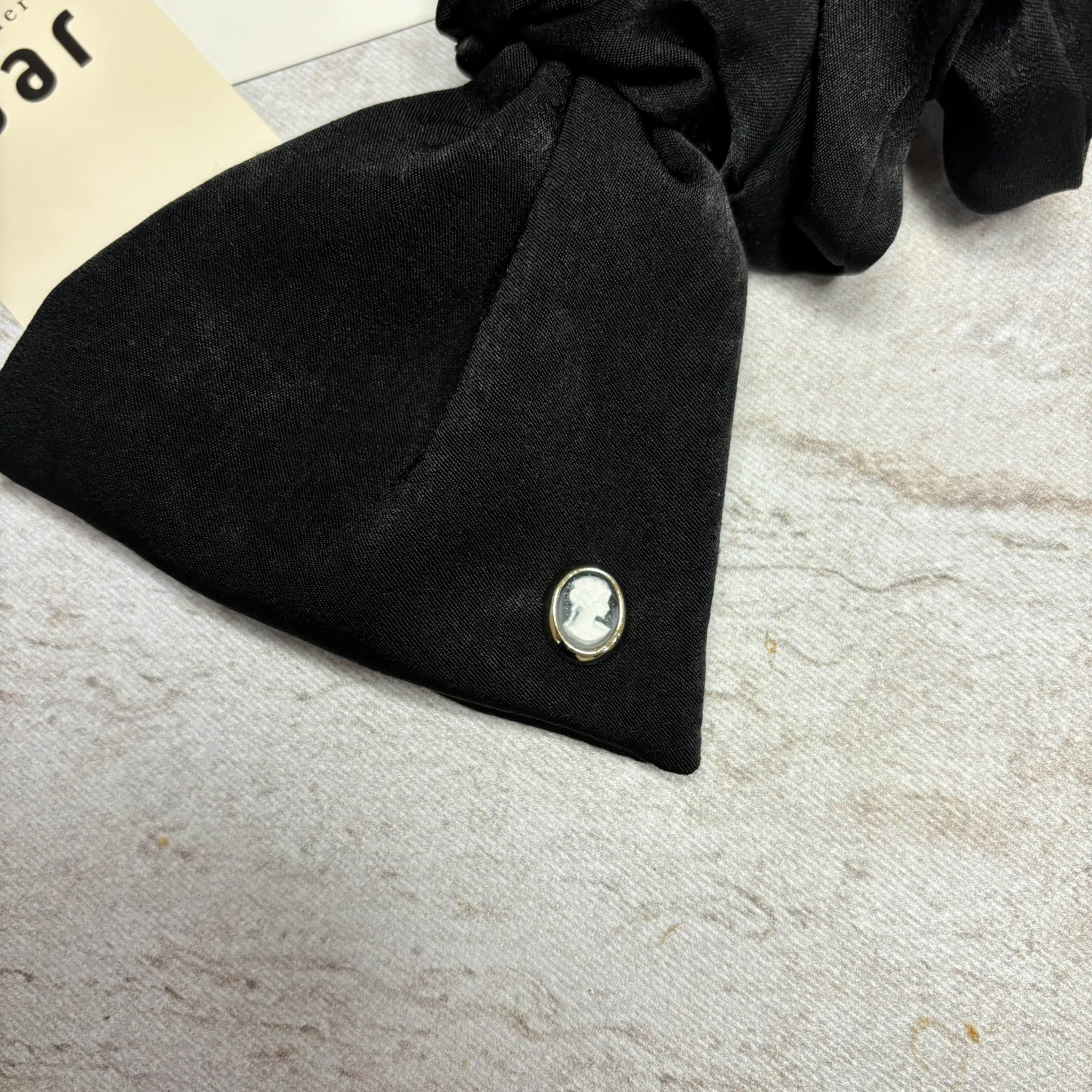 Vintage Mood Cameo Satin Ruffle Scrunchie [Black]