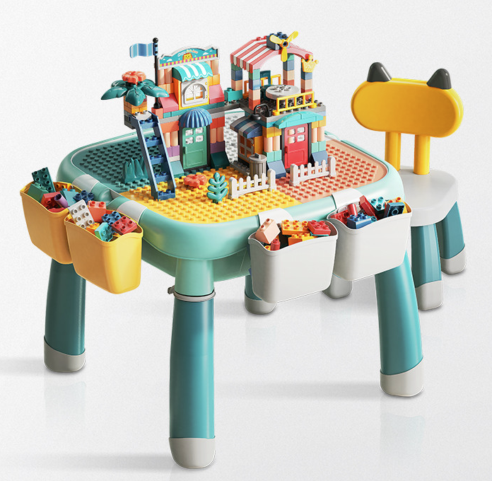 듀플로 놀이도 할 수 있고 상판을 들어내고 물놀이나 모래놀이를 할 수 있는 멀티테이블 세트입니다.