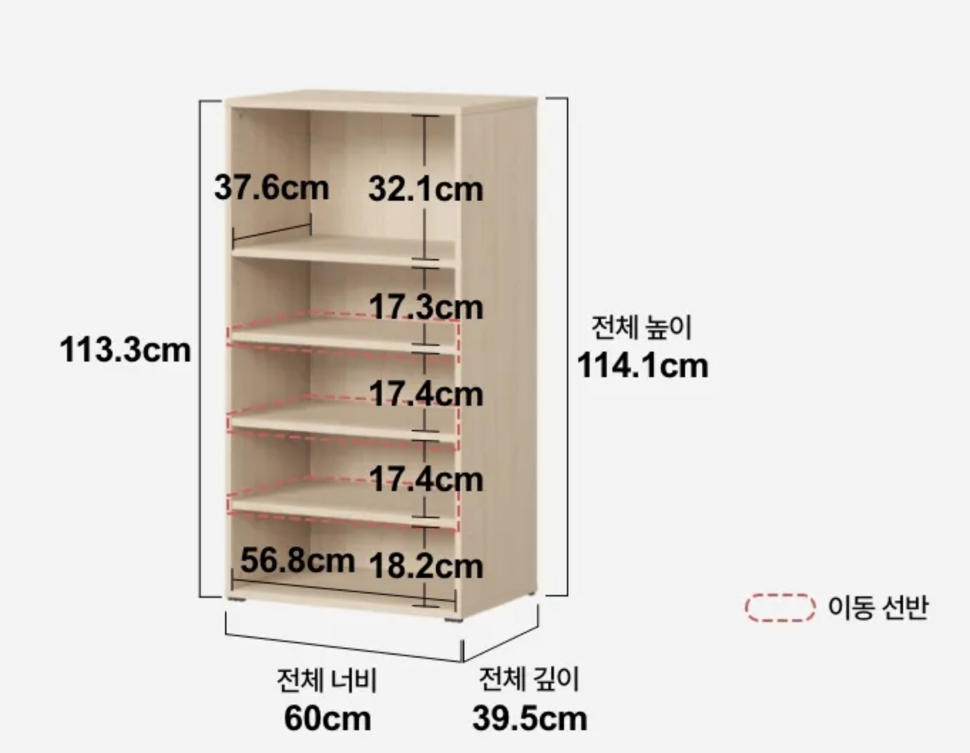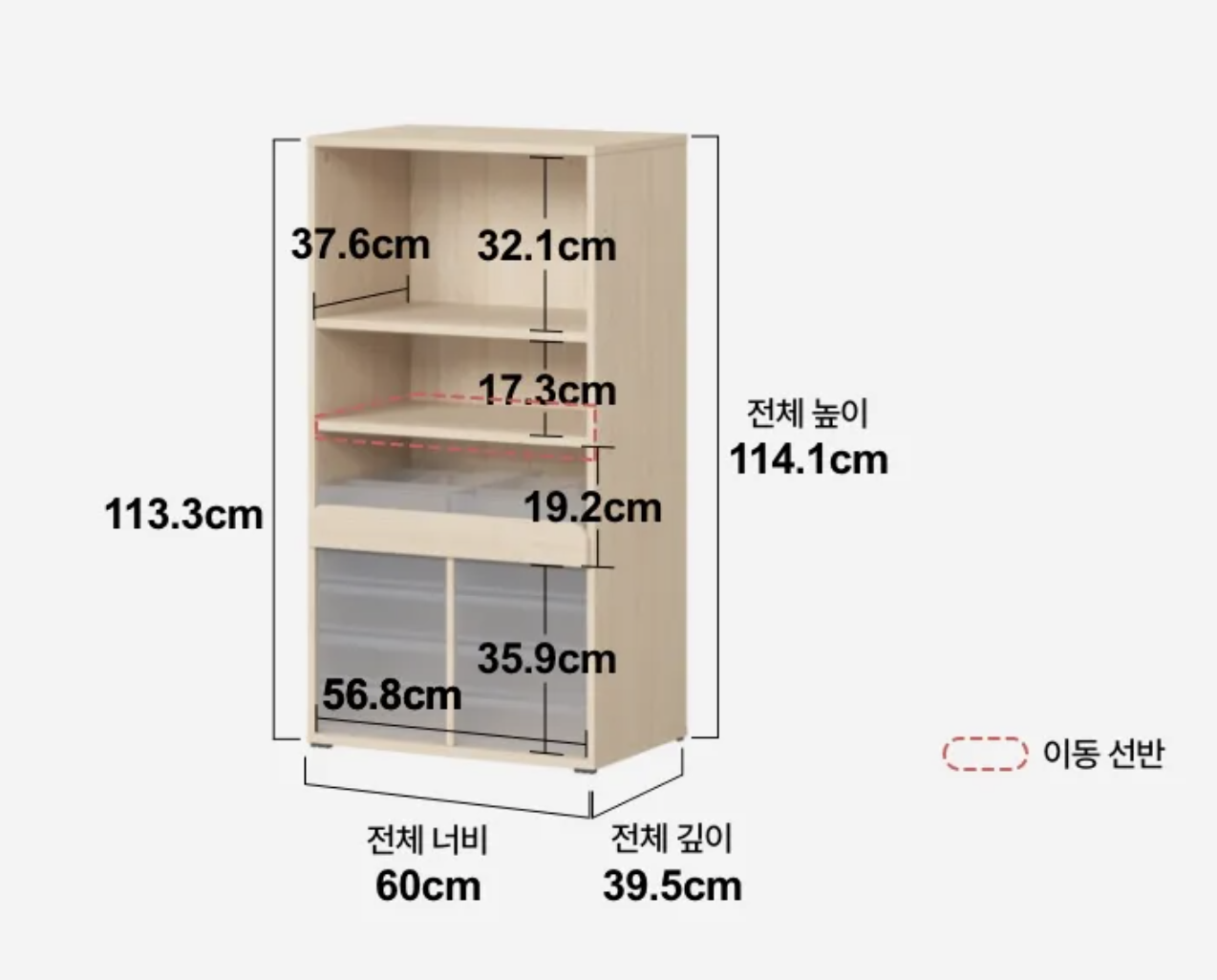 개인적으로 맨 위의 칸을 없애고 모두 좁은 높이의 칸으로 만들어 쓰고 싶긴한데, 선반 추가가 가능한지는 따로 알아봐야할 것 같긴 하네요!