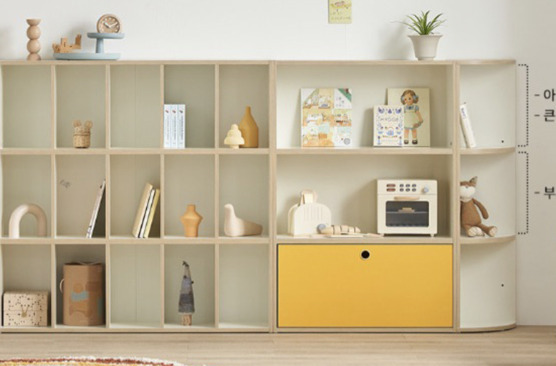- 맨 밑에 도어 설치해서 아이가 만든 자질구레한? 미술 작품이나 활동지들 안보이게 수납 가능