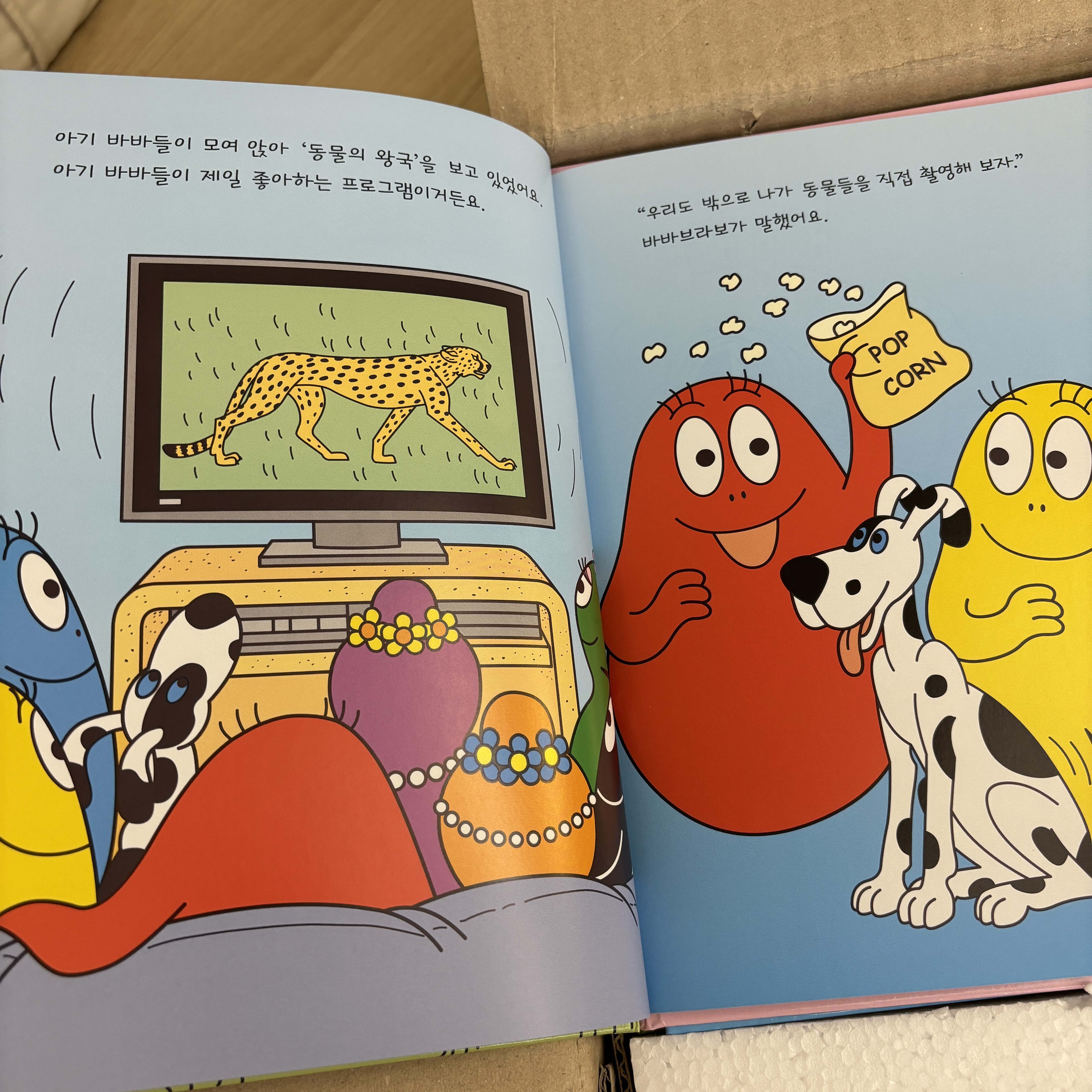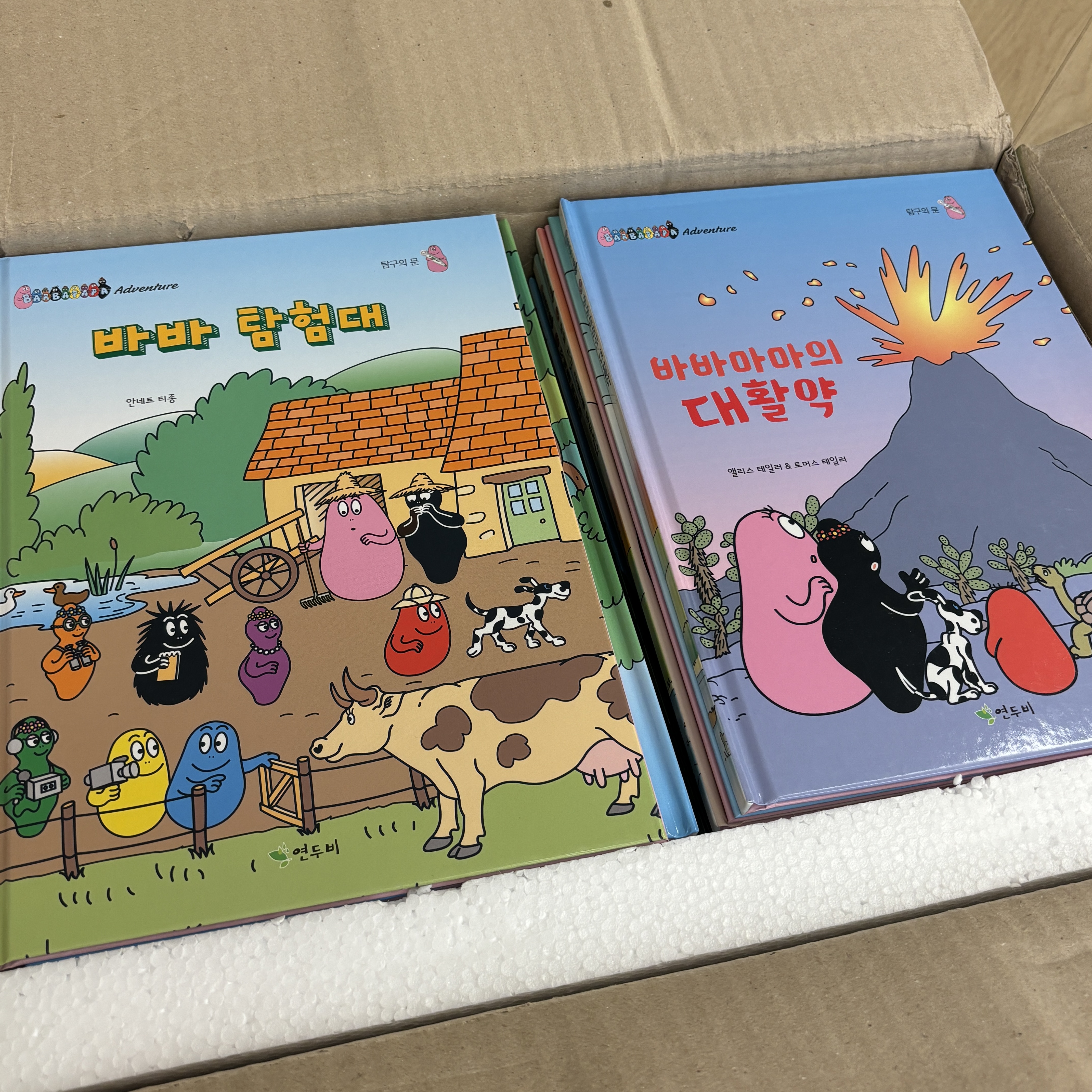 아이들이 좋아할만한 쨍한 색감과 귀여운 캐릭터들, 그리고 짧은 글밥으로 긴 글밥이 아직 어려운 5-6세 아이들에게 부담없는 세계창작 전집을 찾으신다면 바바파파 어드벤처 추천합니다!