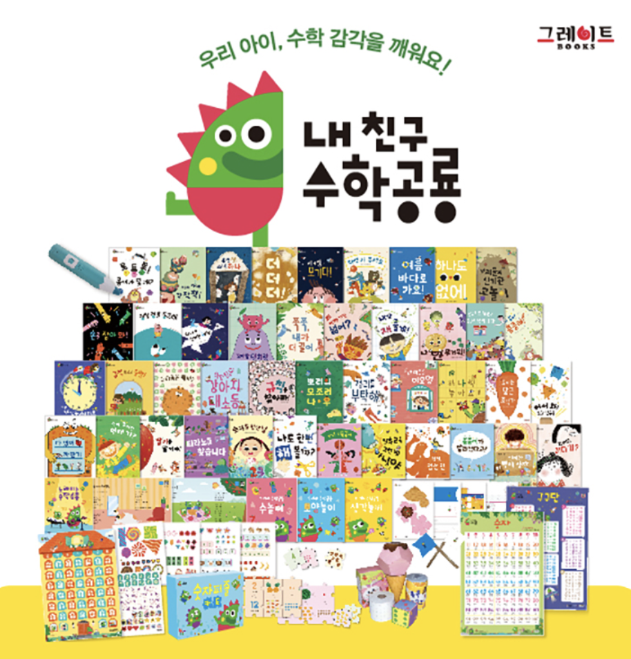 그래서 최근 그레이트북스 안녕마음아(인성) 전집을 들였고, 이번 어린이날에 추가적으로 내친구 수학공룡을 들여야지 계획하고 있었어요.