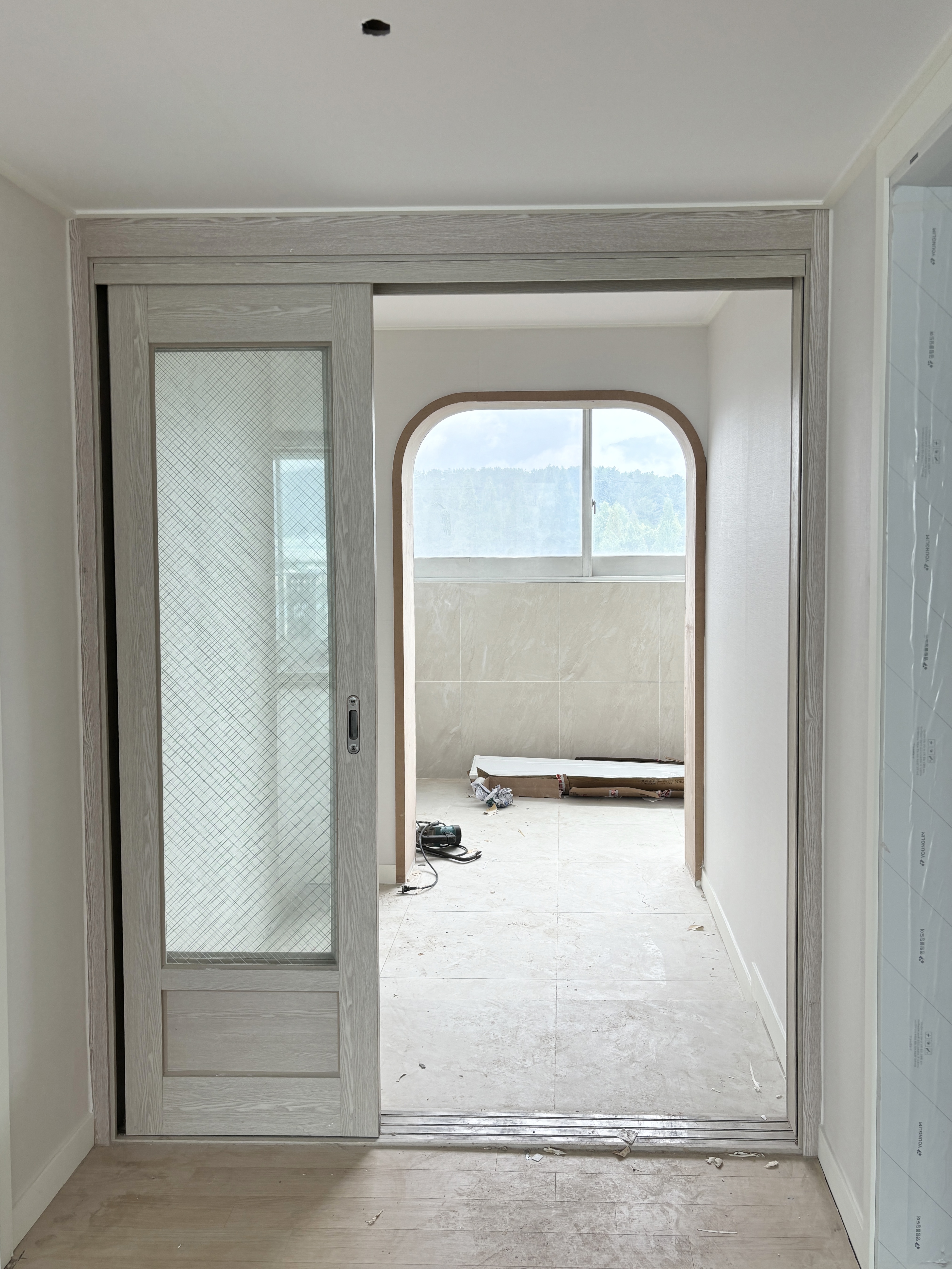 창틀과 창문 프레임은 중문과 동일한 화이트톤으로 시트지 리폼을 할 예정이고, 그 안에 제가 따로 프렌치 창 스타일로 셀프 작업을 해 볼 예정이에요.