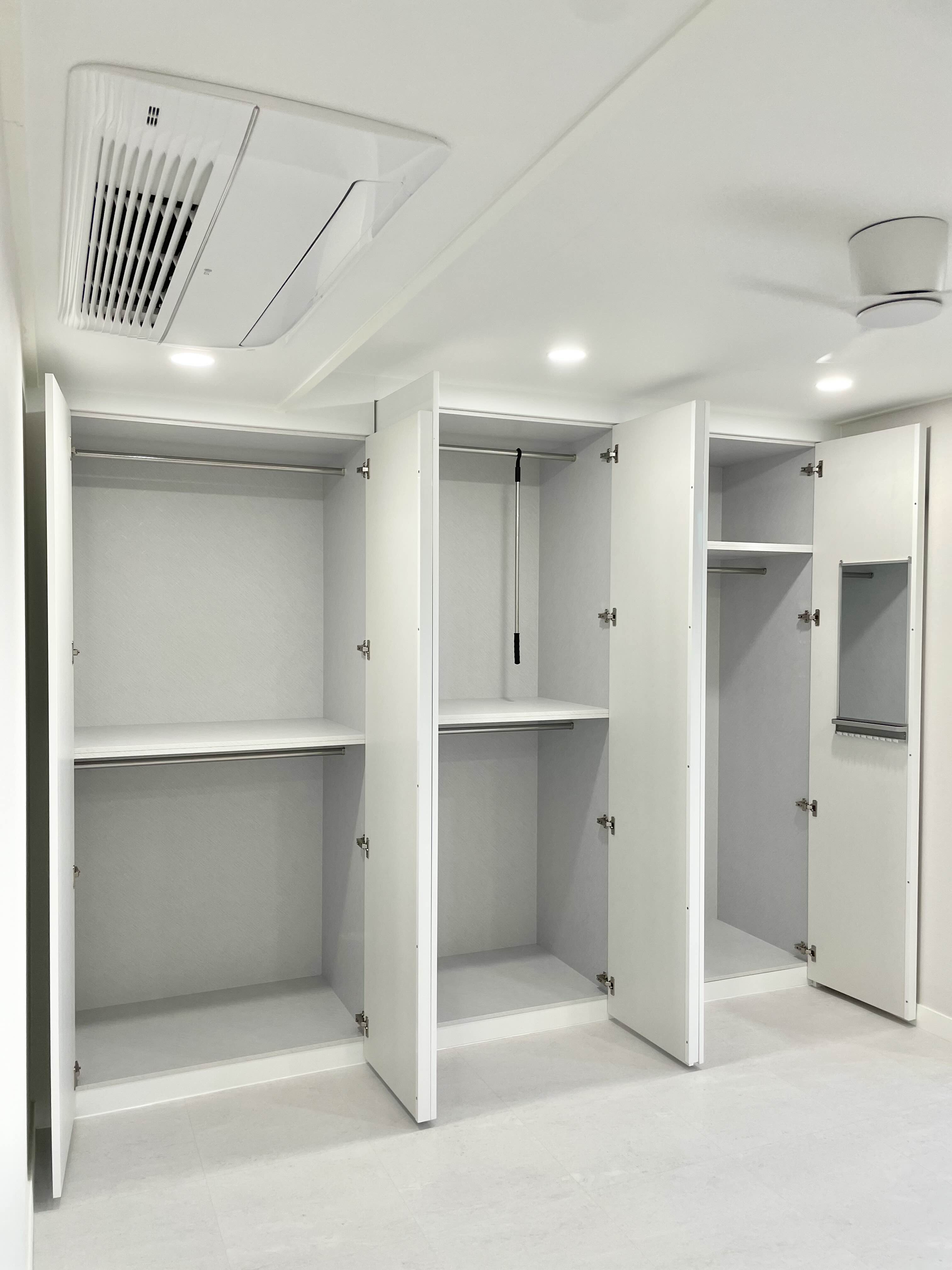 그리고 한쪽 벽면에는 붙박이장을 설치하여 옷 넣을 공간을 확보했어요.