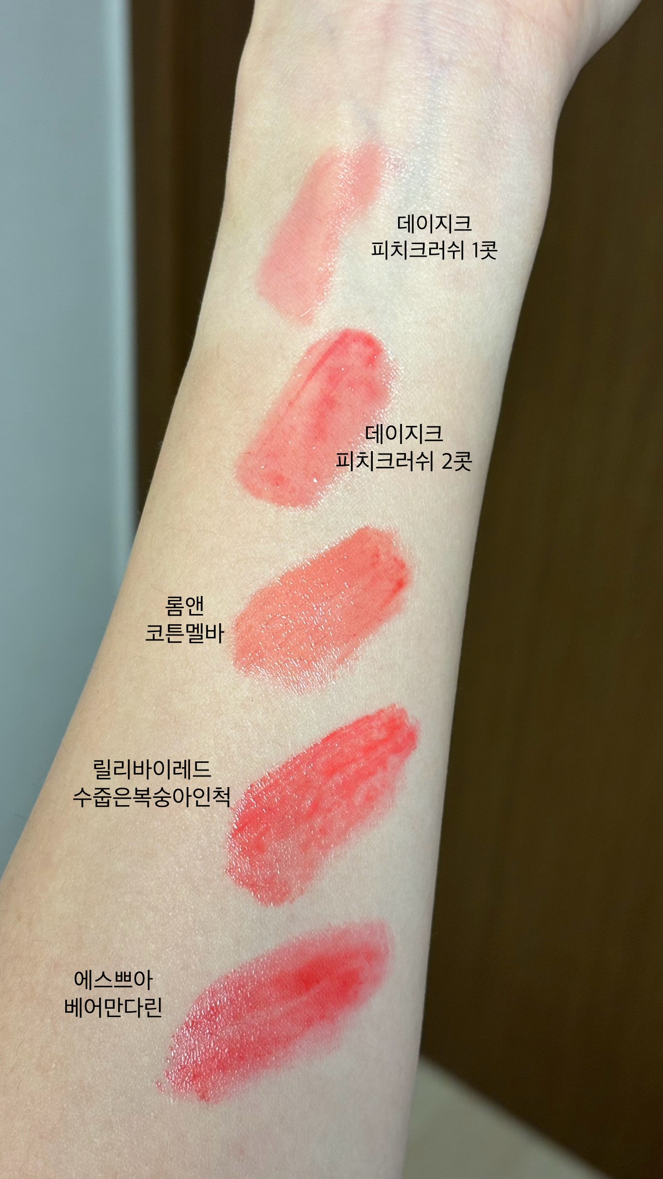 제가 자주 사용하는 봄라이트 틴트들과 색상을 비교해봤어요.